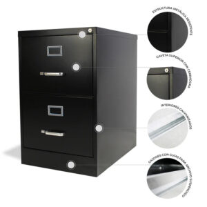 • Cuerpo del archivero fabricado en l‡mina rolada en fr’o calibre 22, respaldo con embutidos en la parte inferior y superior; cuenta con zoclo frontal. Puente central y trasero.